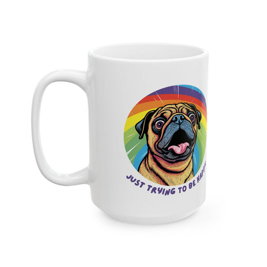 Happy Pug Ceramic Mug, (11oz, 15oz)